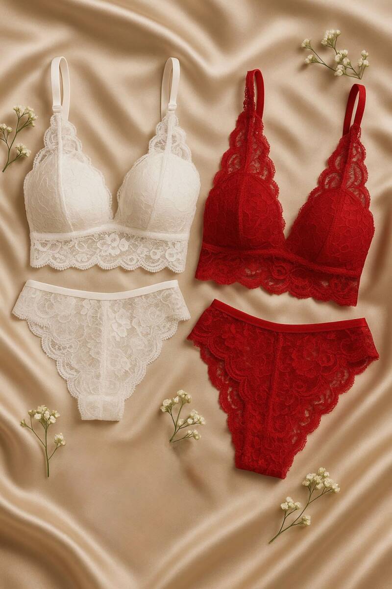 dantel sütyen takımı, 2’li sütyen takımı, 4 parça lingerie set, kırmızı dantel bralet, ekru dantel bralet,m, dantel külot, bralet takım, şık iç giyim, kadın iç çamaşırı, bayan iç çamaşırı, kadın sütyen seti, rahat sütyen takım, günlük iç çamaşırı, özel gün iç giyim, esnek dantel takım, romantik iç çamaşırı, kırmızı lingerie, ekru iç giyim, beyaz dantel takım, desteksiz sütyen,esnek bralet, soft destekli sütyen, iç çamaşırı takım kadın