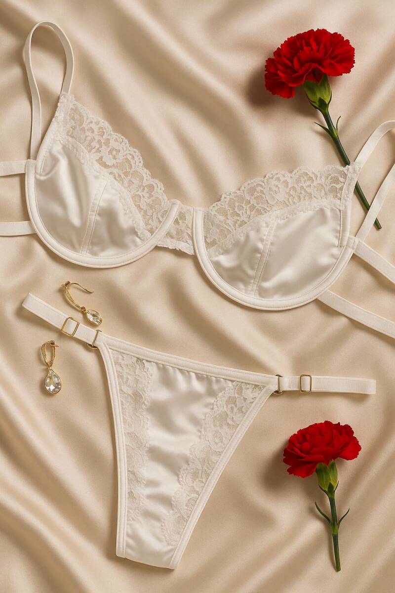 AmoraSaten sütyen takımı, zarafeti ve konforu bir araya getirerek iç giyimde yeni bir dokunuş sunar. Saten kumaşın yumuşaklığı, dantel detayların romantik havasıyla buluşuyor. Ayarlanabilir askılı, destekli sütyen ve aksesuar detaylı tanga ile hem şık hem de rahat bir deneyim seni bekliyor.