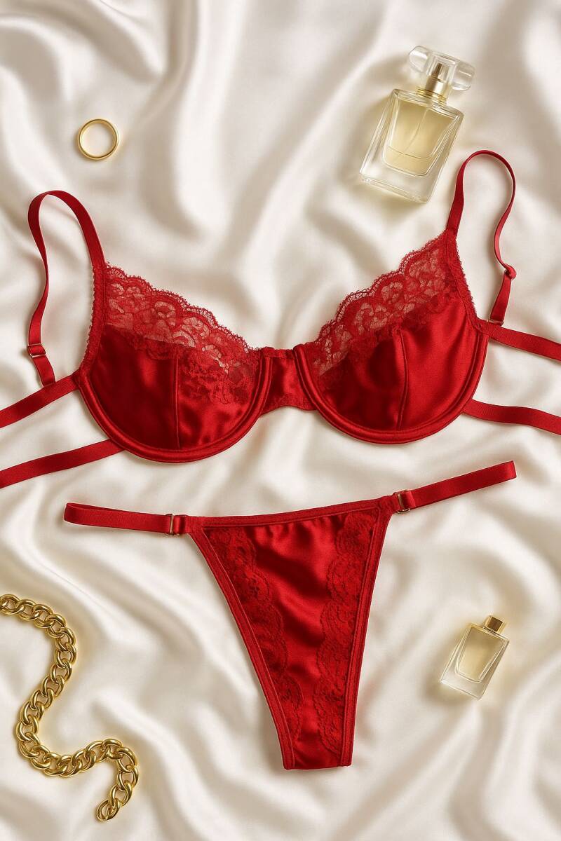 Amora Saten Sütyen Takım Kırmızı 6992