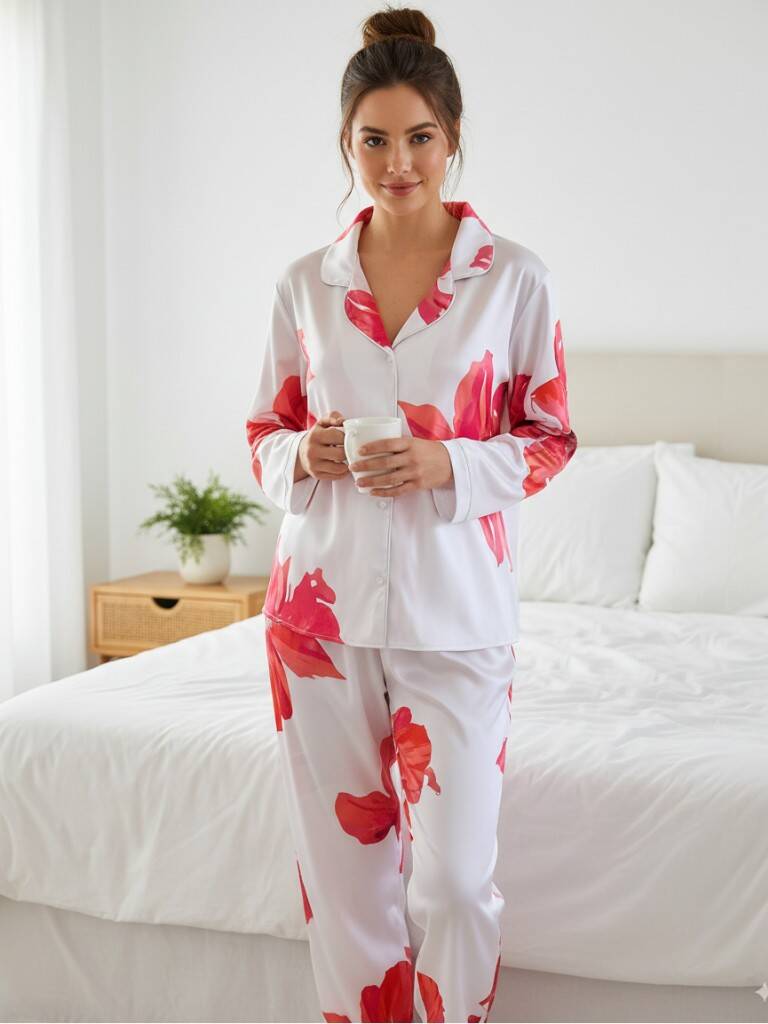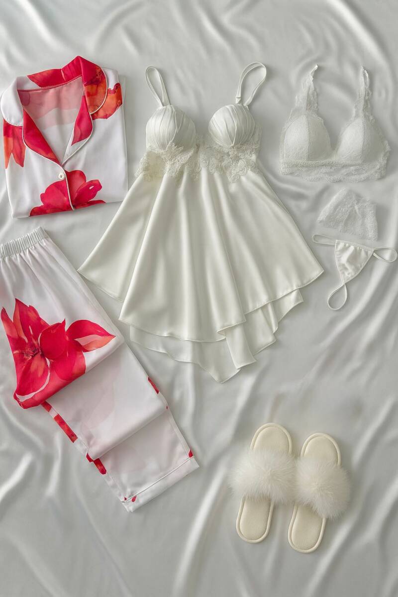 • Hafif ve parlak saten kumaşıyla gece boyu konfor