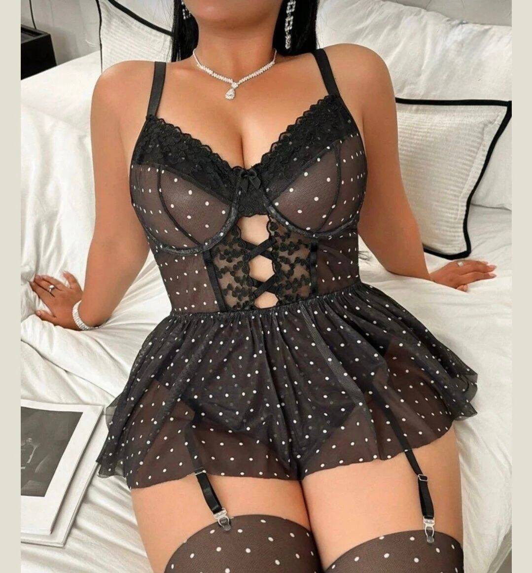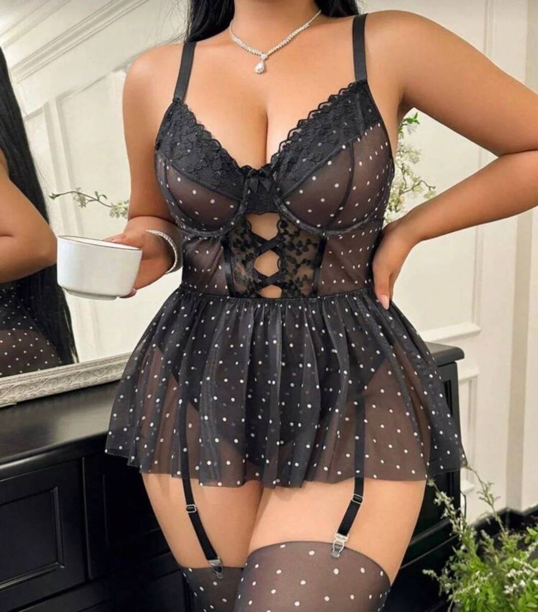 Puantiyeli Tasarım Büyük Beden Jartiyer Çorap Hediyeli 6819