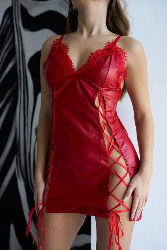 Parlak deri kumaşıyla vücudu kusursuz şekilde saran deri gecelik, cesur ve iddialı tarzınızı yansıtıyor. Üstelik yanında şık file çorap hediyesi ile birlikte geliyor! Bu özel kombin, gecenin en dikkat çekici kadını olmanızı sağlayacak.
