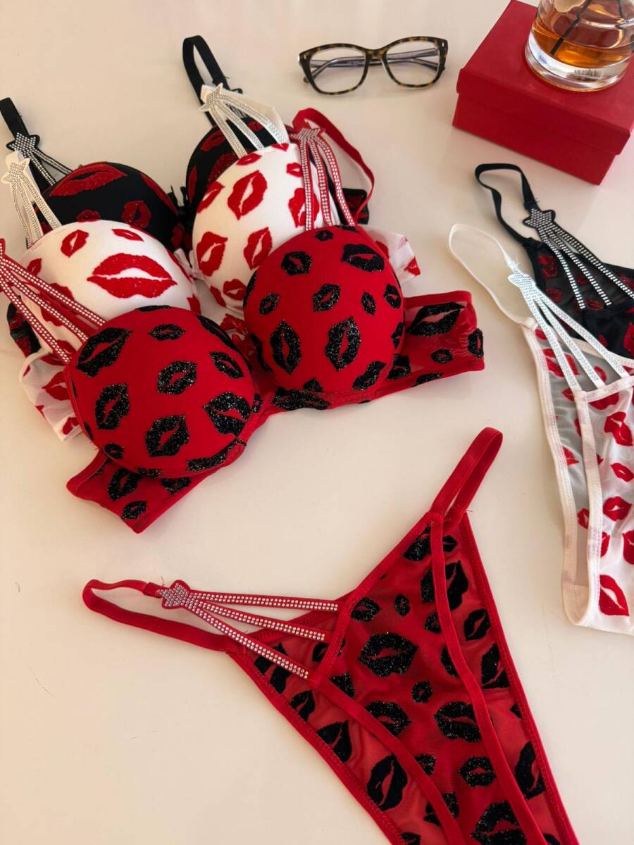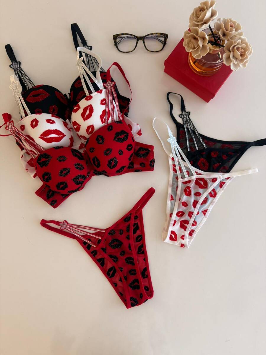 Kiss koleksiyonunun özel tasarımı olan bu 3’lü set, hem şıklığı hem de konforu bir arada sunar. Destekli sütyen formu göğüsleri kusursuz şekilde kavrarken, rhinestone detaylı askılar sofistike bir görünüm kazandırır. Takımın uyumlu külotları ise rahat kesimiyle gün boyu konfor sağlar. Modern dudak baskısı ile enerjik, feminen ve özgüven dolu bir stil yaratır. Günlük kullanımda zarif bir dokunuş, özel anlarda ise iddialı bir görünüm isteyen kadınlar için ideal seçimdir.