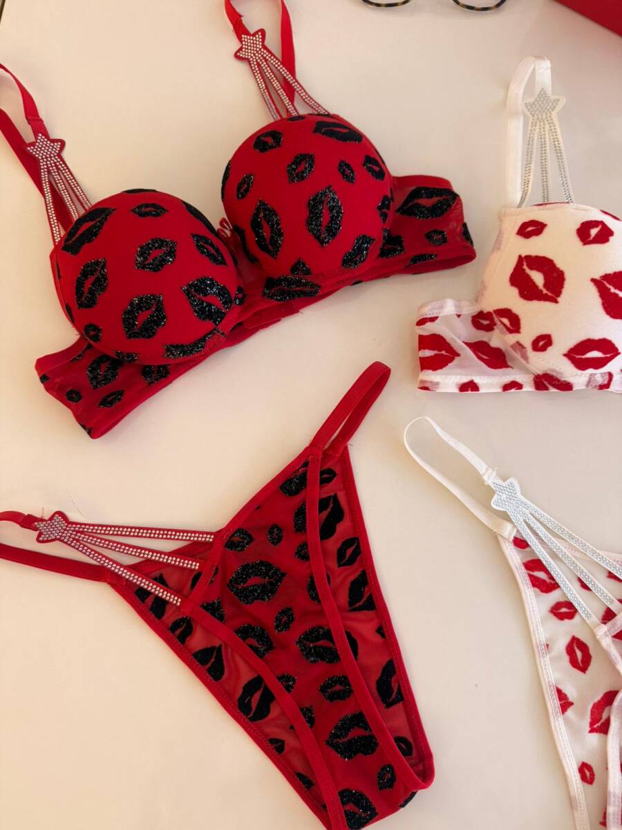 Kiss koleksiyonunun özel tasarımı olan bu 2’lü set, hem şıklığı hem de konforu bir arada sunar. Destekli sütyen formu göğüsleri kusursuz şekilde kavrarken, rhinestone detaylı askılar sofistike bir görünüm kazandırır. Takımın uyumlu külotları ise rahat kesimiyle gün boyu konfor sağlar. Modern dudak baskısı ile enerjik, feminen ve özgüven dolu bir stil yaratır. Günlük kullanımda zarif bir dokunuş, özel anlarda ise iddialı bir görünüm isteyen kadınlar için ideal seçimdir.